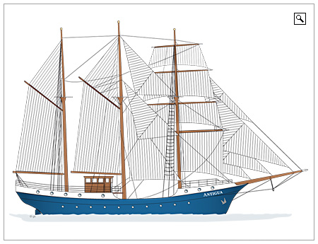 Ondanks een uitgebreide en rigoureuze ombouw behield de Antigua alle kenmerken van een modern groot zeilschip.